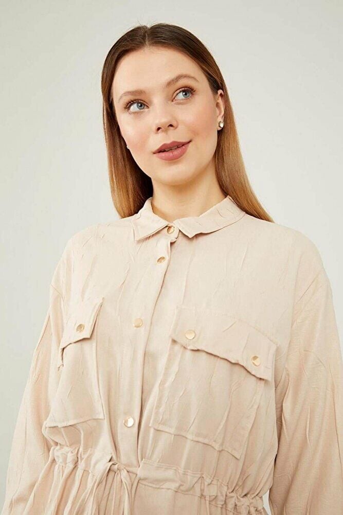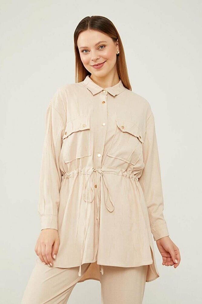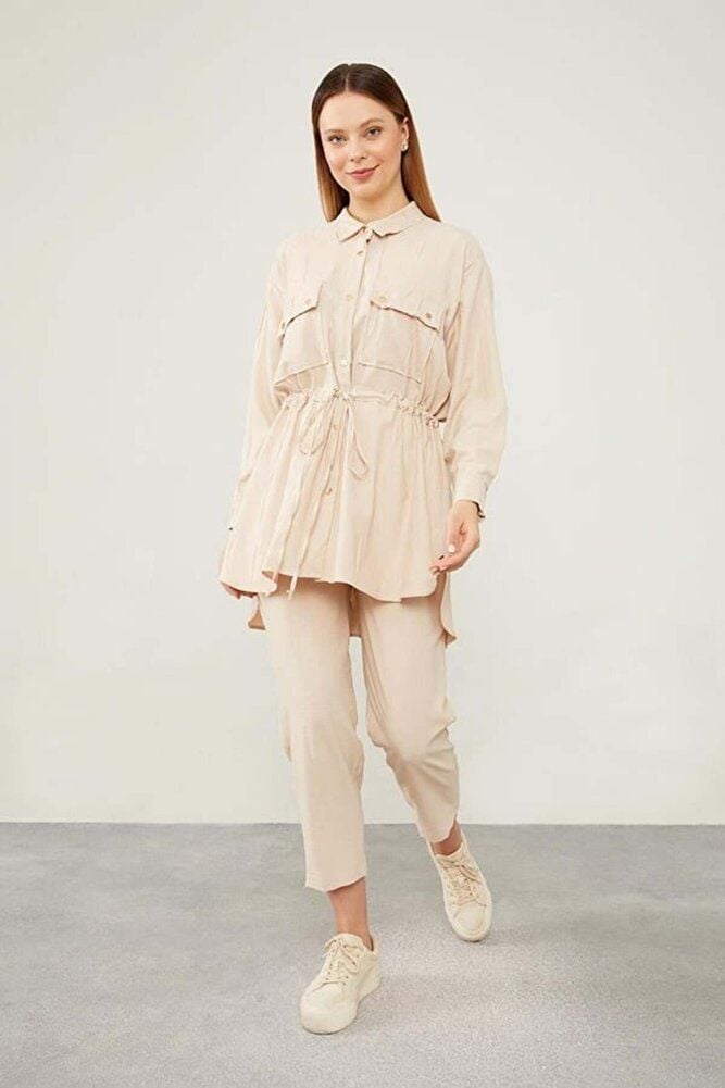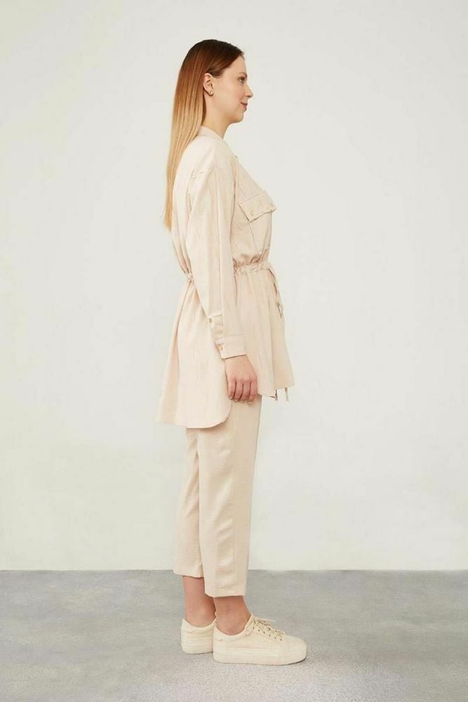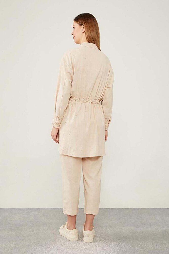 Ariana Beli Büzgülü Pantolonlu Spor Takım Bej
