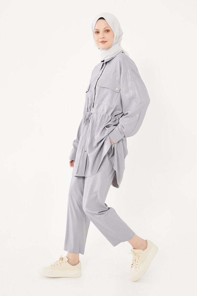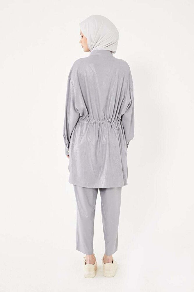 Ariana Beli Büzgülü Pantolonlu Spor Takım Parlak görünümlü soft kumaş, önü boydan metal düğmeli, elastik bel bantlı, dökümlü orta bel pantolon. Model Boy:176 cm Göğüs:85 cm Bel:62 cm Basen:90 cm Ürün Bilgisi: Numune Bedeni:36 Renk: Açıklama: Ariana Beli Büzgülü Pantolonlu Spor Takım kaliteli işçiliği, ince detayları ve rahat kumaşıyla günlük kullanıma uygundur. Her tarza ve her ortama uyum sağlar.