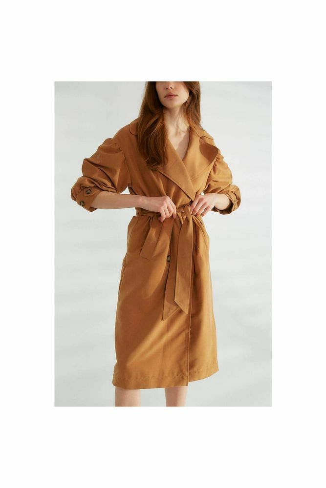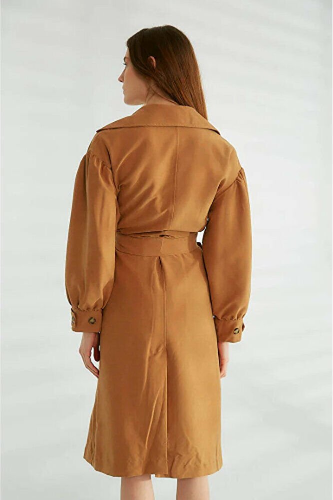 Balon Kol Detaylı Kuşaklı Trençkot Taba