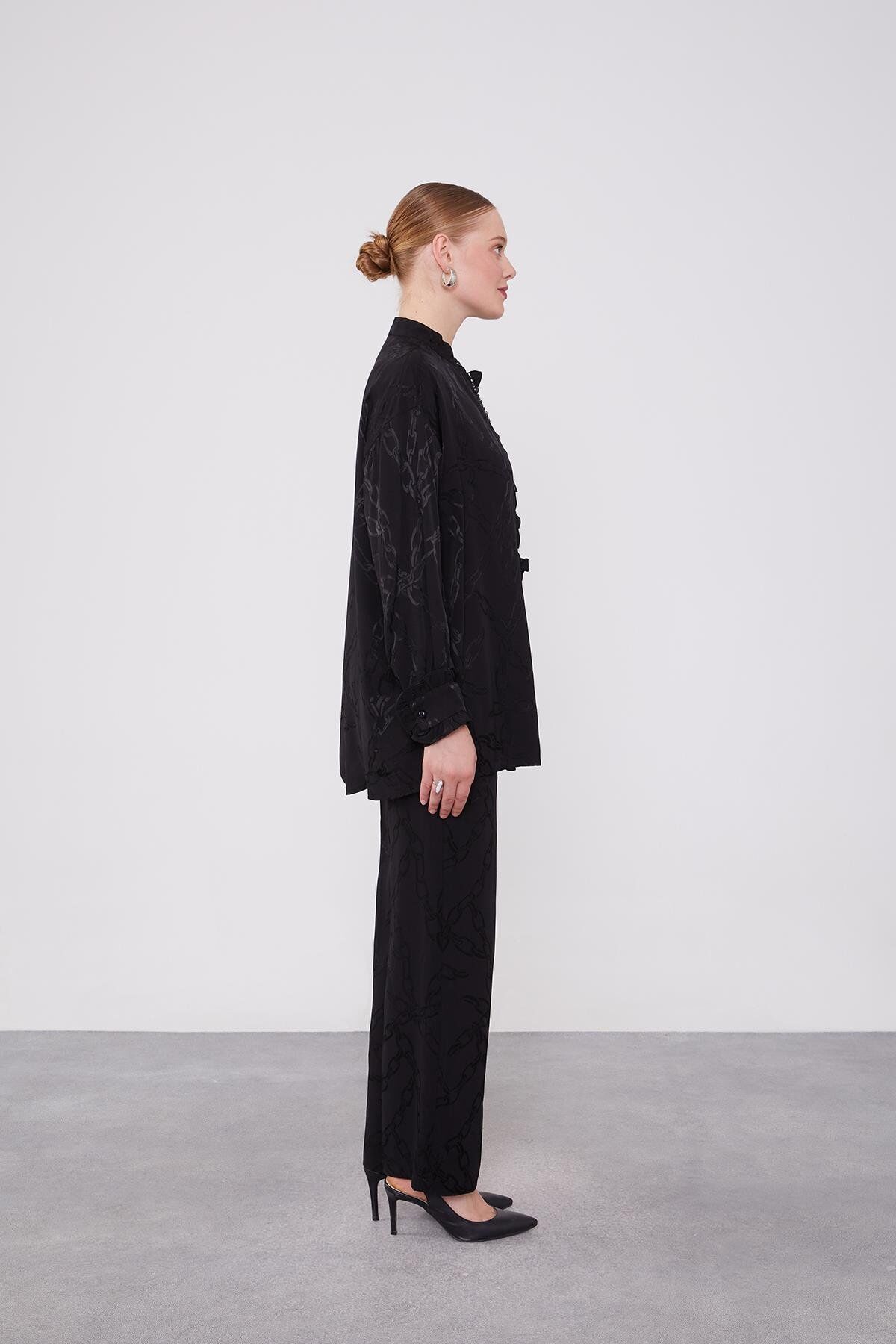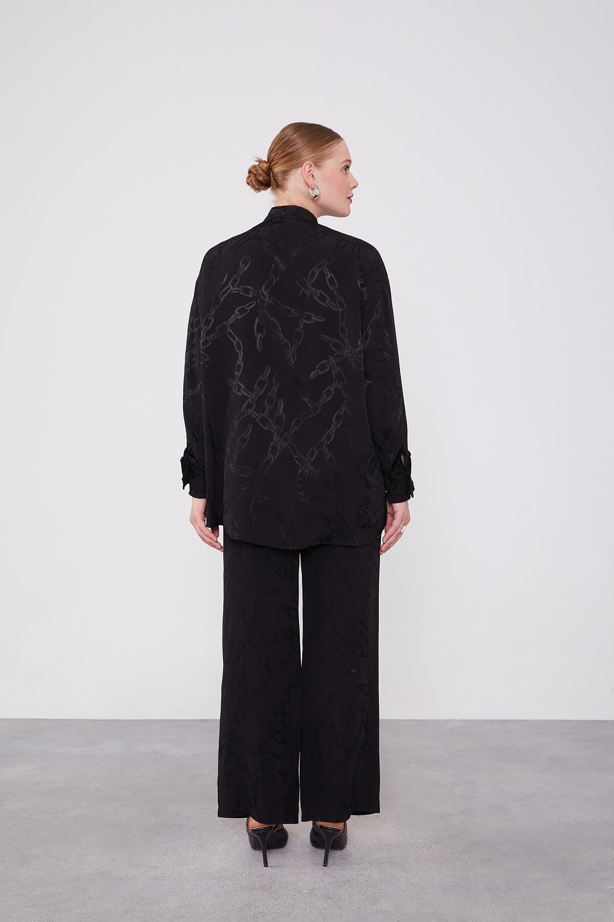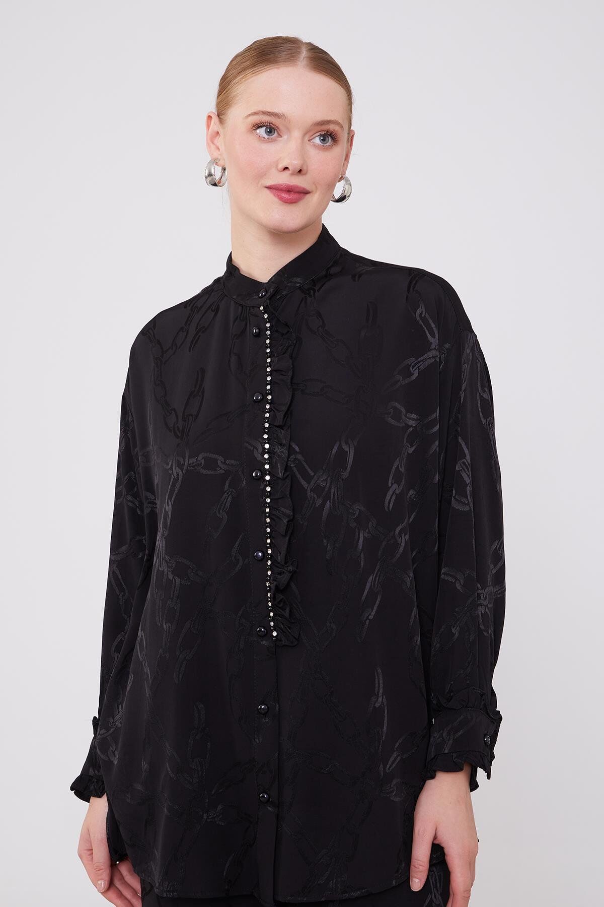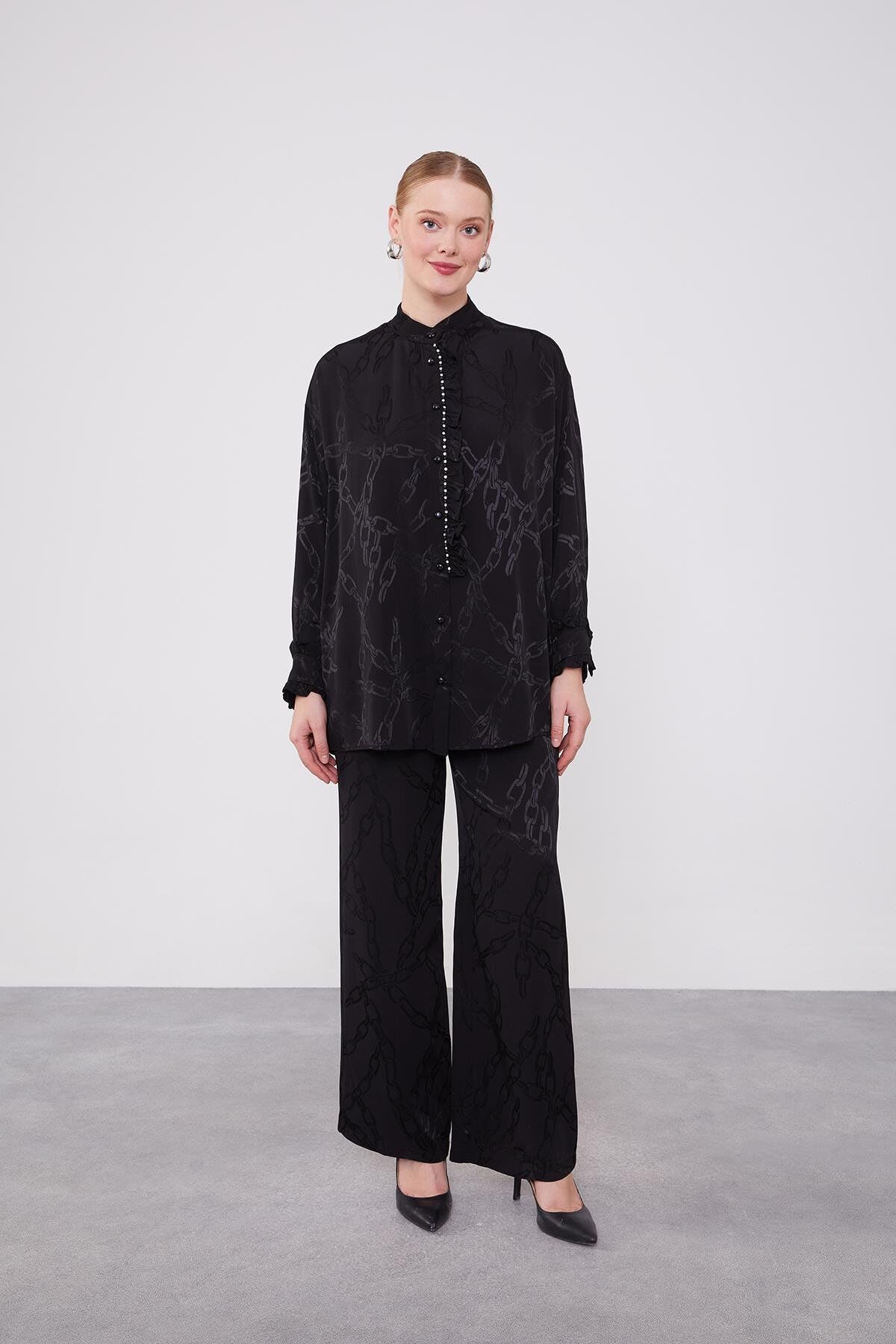 Fırfır Düğme Detaylı Zincir Desen İkili Takım