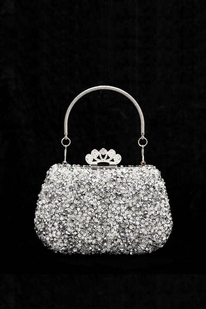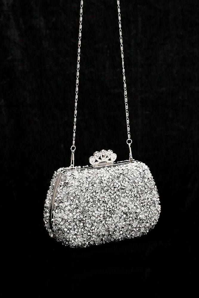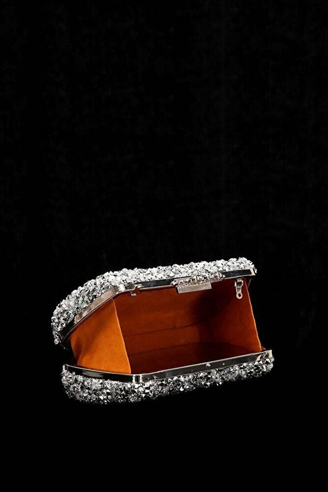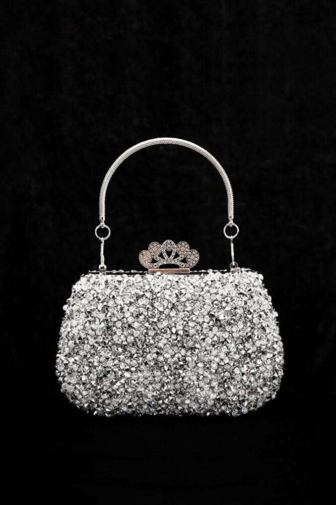 Jade Platin Taç Tasarım Taşlı Abiye El Çantası