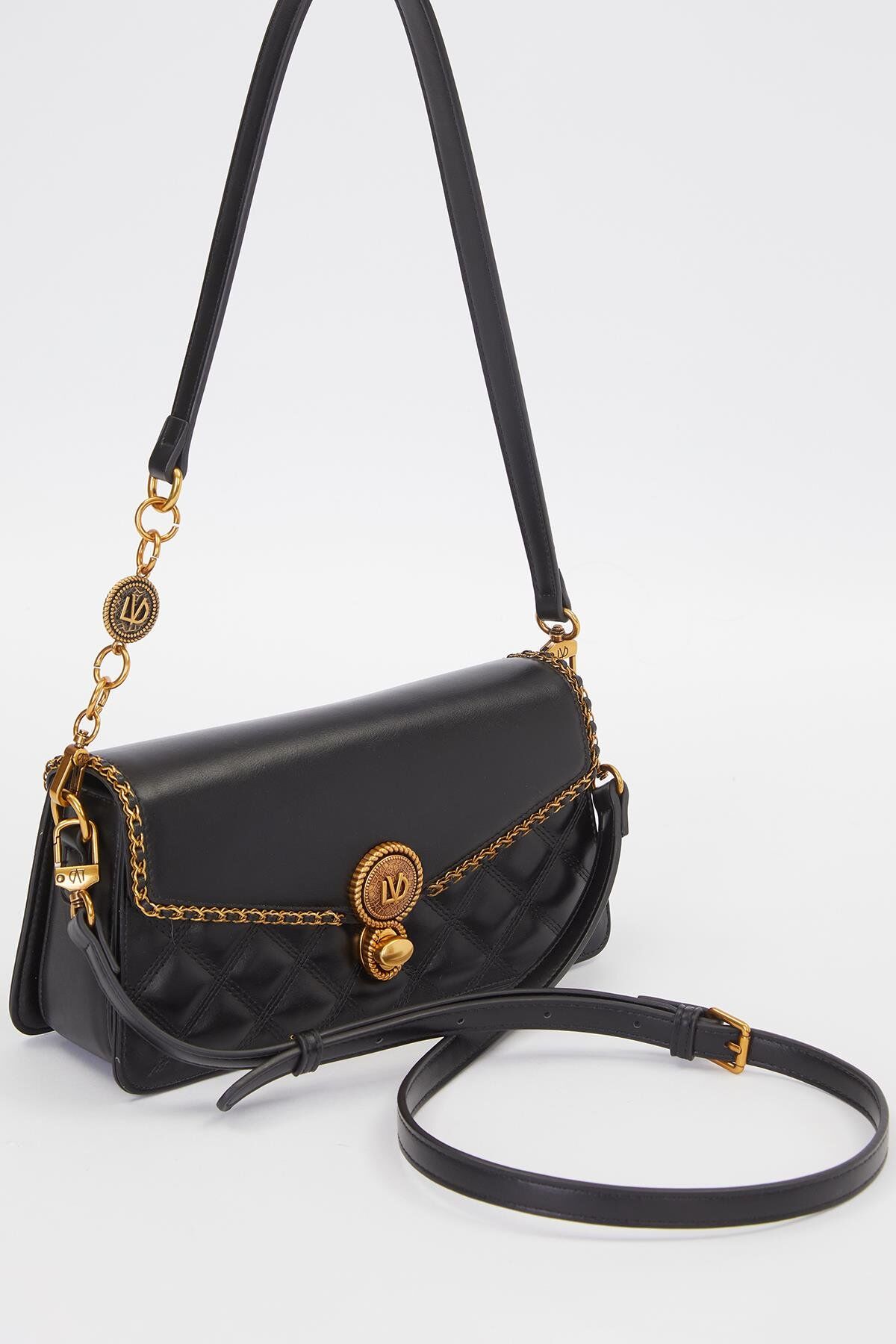 Premium Siyah Burma Kilit Detay Omuz Çantası