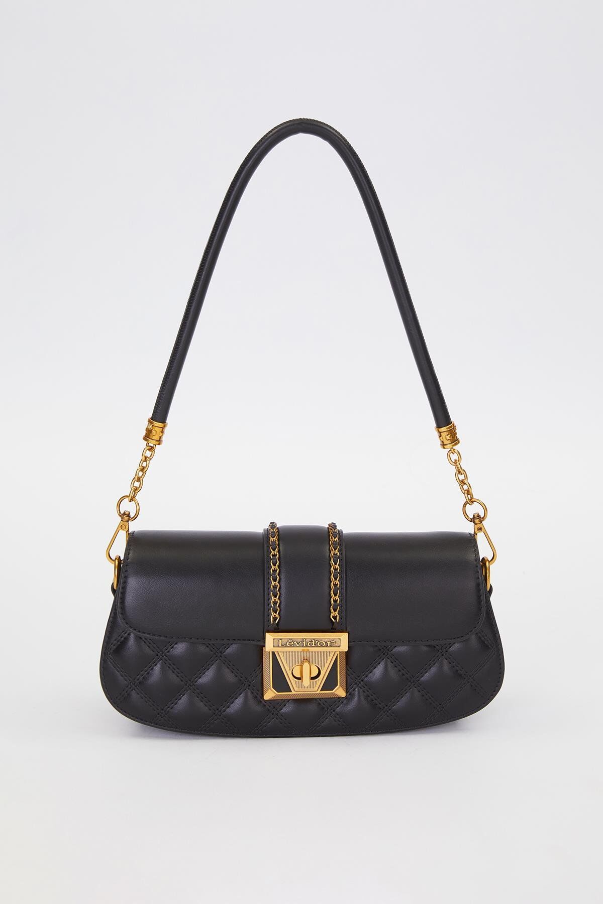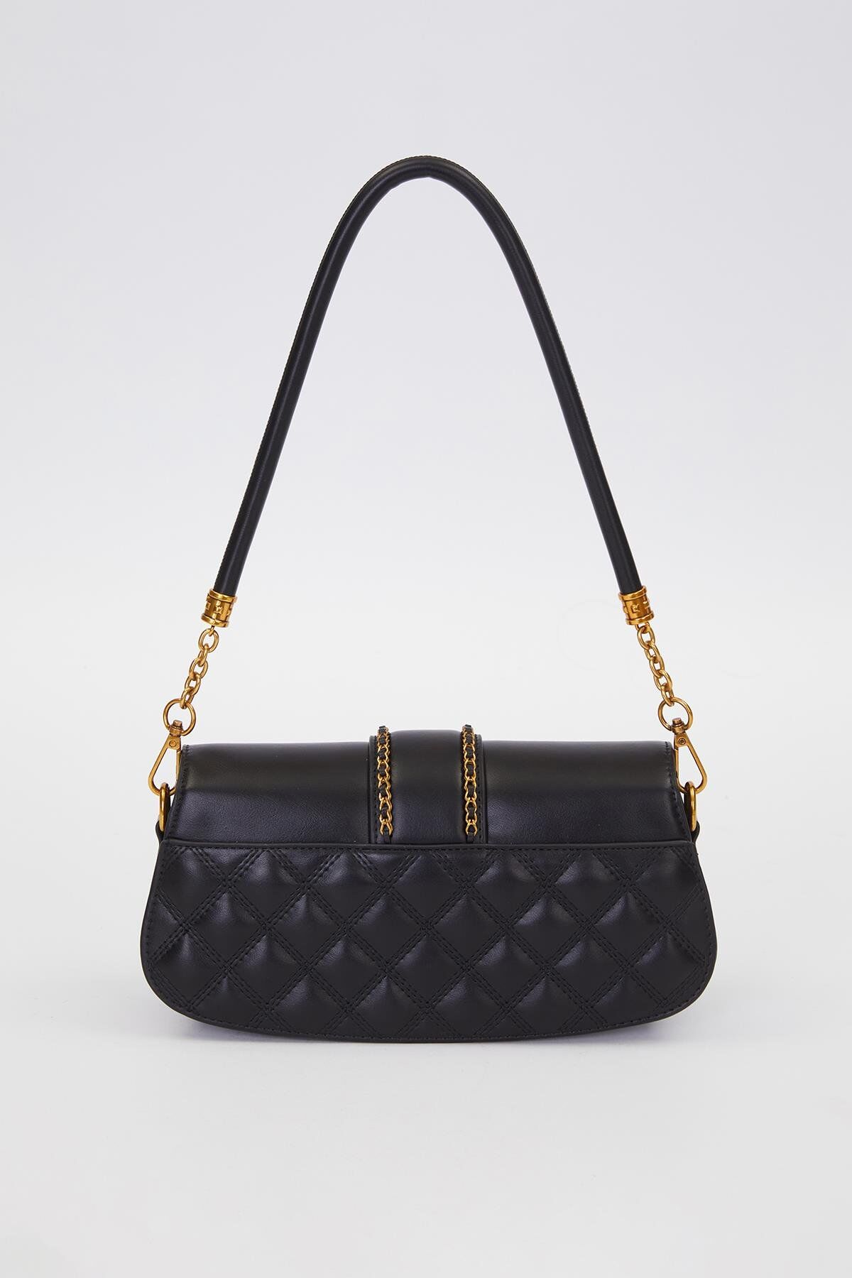 Premium Siyah Oval Kapitone Desen Omuz Çantası